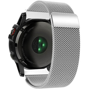Experience the elegance of the Silver Milanese Loop Garmin Fenix 6X / 7X / 8 (51MM) Band, a stylish and practical accessory to enhance any outfit.