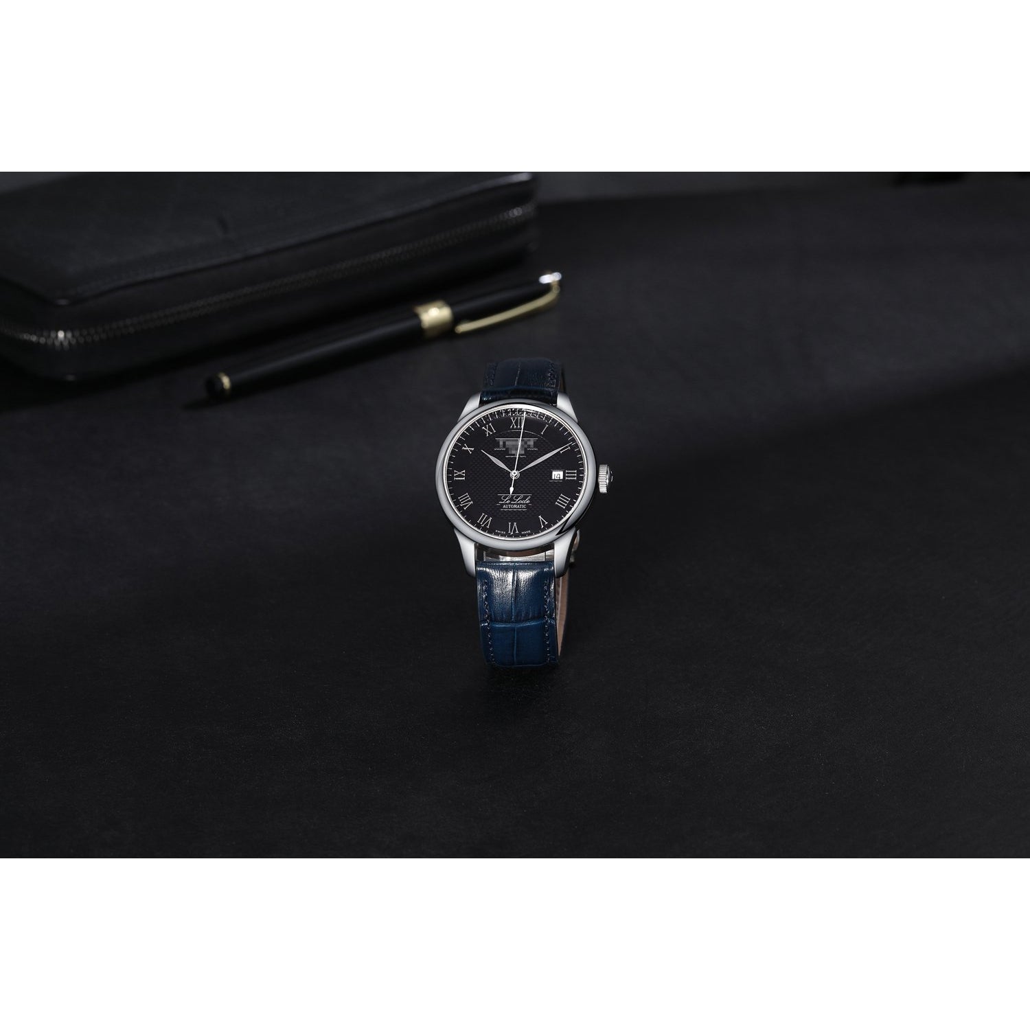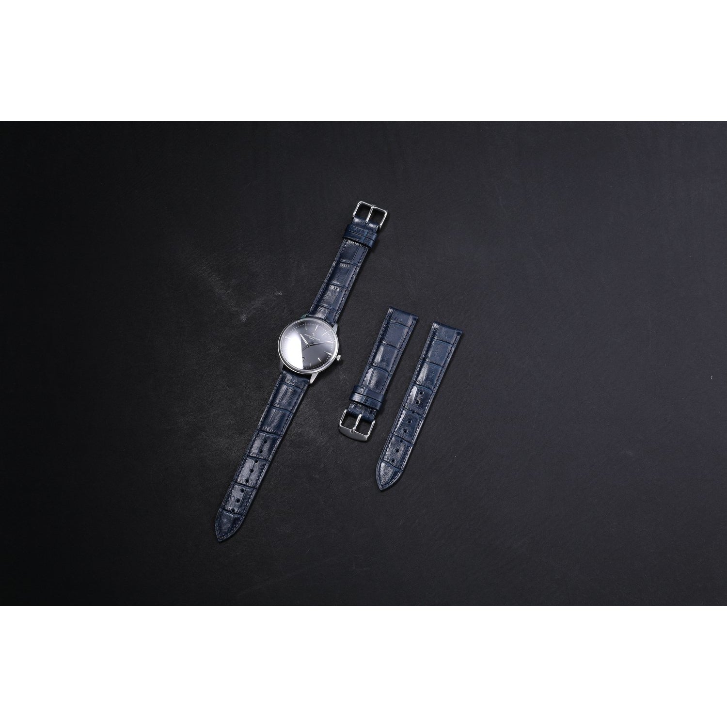 Genuine Blue calf leather, embossed with an alligator grain. Simple yet classic style - suitable for everyday use.